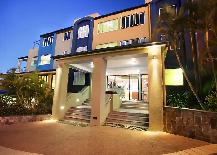 Caloundra Central Apartment Hotel Official offers 4.5-star resort-style accommodations featuring multiple swimming pools, a heated spa pool, and lush tropical gardens. The hotel provides family-friendly luxury studio, one-, two-, and three-bedroom apartments equipped with modern amenities like free Wi-Fi and secure parking.