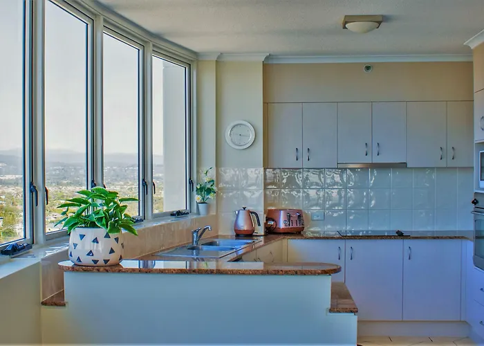 Indigo Blue offers luxurious beachfront apartments with stunning ocean views and spacious living areas. This 5-star Gold Coast hotel includes amenities like a heated pool, spa pool, and a fitness center.