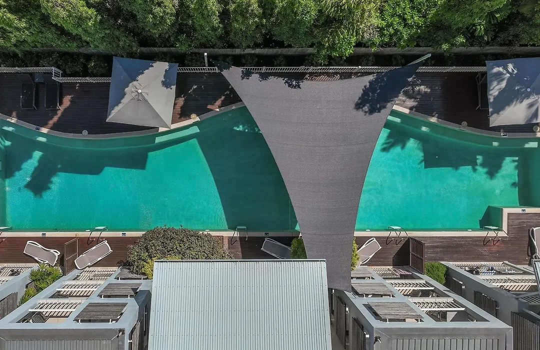 Rooms are available as stylish Hotel Spa Rooms or self-contained One and Two Bedroom Spa Apartments, both equipped with modern amenities and designed to offer pools views. Some accommodations feature private swim-up pool decks, providing direct access to one of the four pools available at the property.