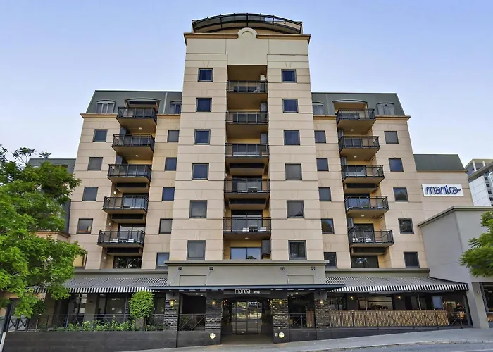 Mantra On Hay Perth offers four-star accommodations with amenities including an indoor heated pool, fitness equipment, and an on-site restaurant. Located in East Perth, this hotel features modern Australian cuisine and convenient access to nearby attractions.