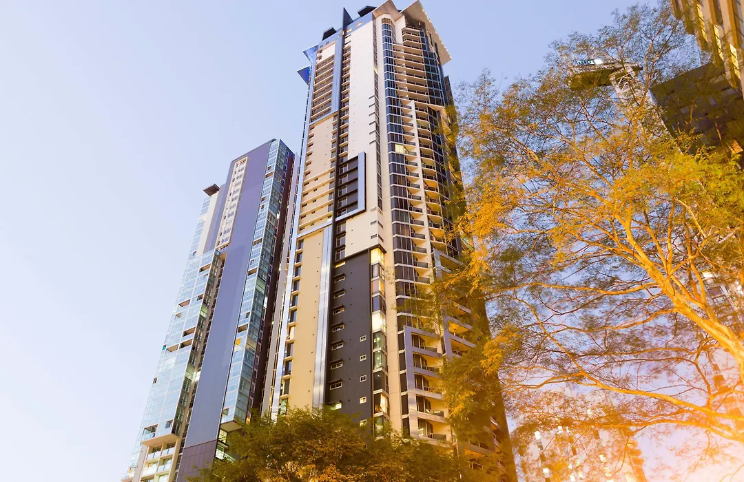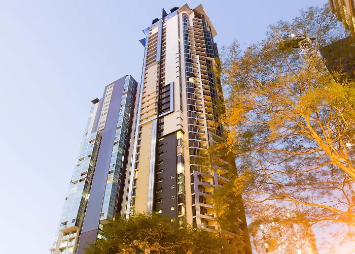 Mantra On Mary is a 4-star Brisbane hotel offering self-contained apartments with full kitchens, laundry facilities, and modern furnishings. Amenities include an outdoor pool, fitness center, and BBQ area, catering to both leisure and business travelers.