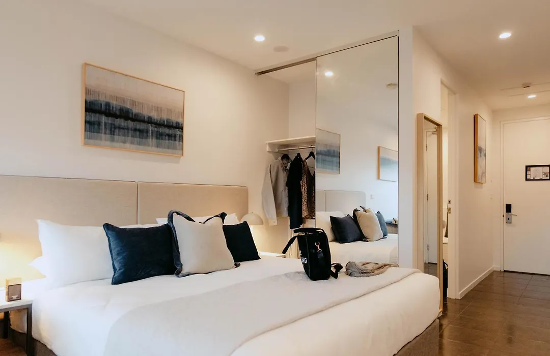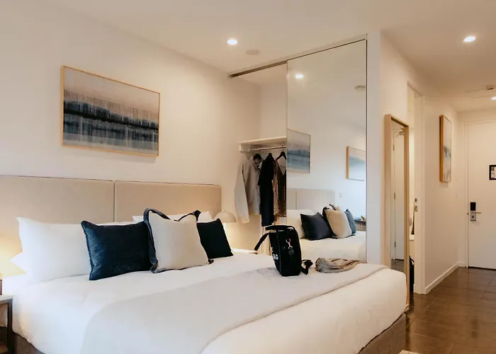 Punthill Williamstown offers modern serviced apartments with options for two bedrooms, ideal for families and corporate travelers. This 5-star Williamstown hotel features a rooftop deck with an outdoor heated spa and BBQ facilities, along with a complimentary on-site gym.
