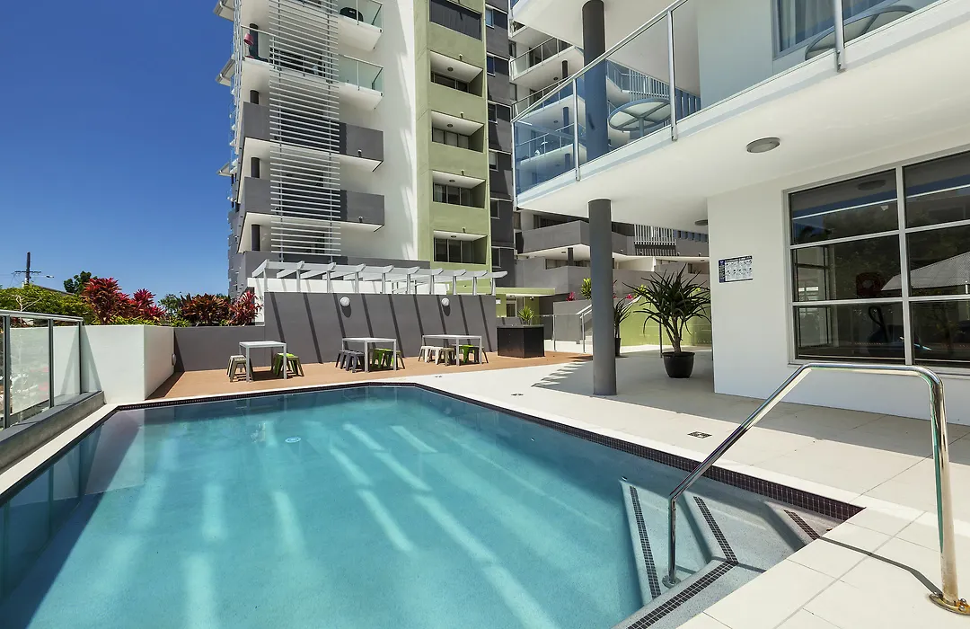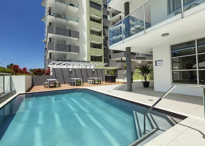 Quest Breakfast Creek offers 5-star serviced apartment style accommodations with an 8.7/10 rating on Booking.com. The property features a pool, gym, and a mini-grocery store, catering to both short and long stays. Guests can utilize the extensive pantry service for meal preparation, making it suitable for families and larger groups.