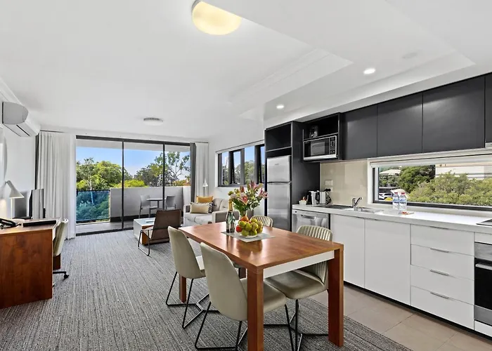 Local dining options within walking distance include Asian restaurants and casual dining experiences. Grocery deliveries are available for guests, allowing for in-apartment meal preparation. The hotel's location in a bustling precinct provides access to a vibrant array of nearby eateries.
