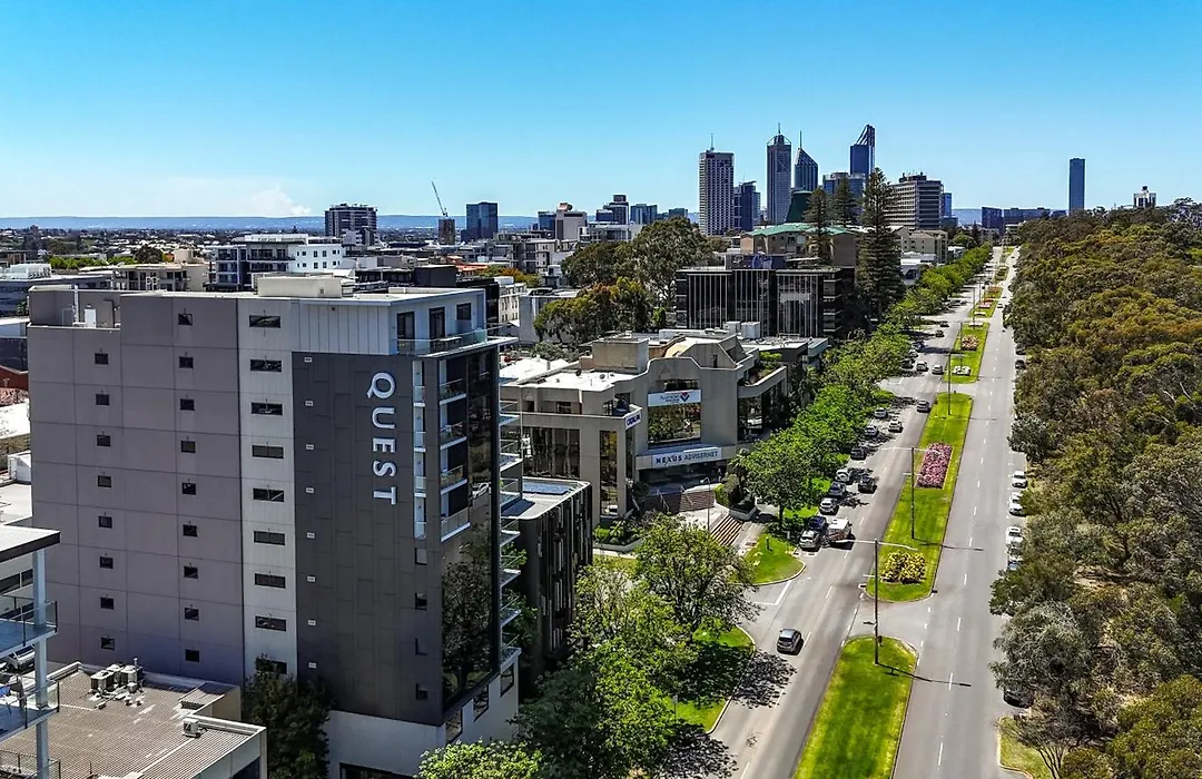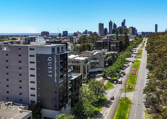 Quest Kings Park offers 4-star accommodations with stunning views of the Perth CBD skyline and direct access to Kings Park and Botanic Gardens. This apartment hotel features 71 serviced apartments, including Studios and Two Bedroom Apartments, along with a fitness center and grocery delivery service.