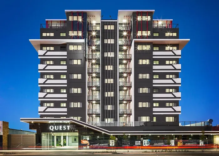 Quest Woolloongabba is a 4-star hotel offering serviced apartment accommodations with fully equipped kitchens and laundry facilities, ideal for both short and long stays. Amenities include free WiFi and a rooftop terrace with impressive city skyline views.