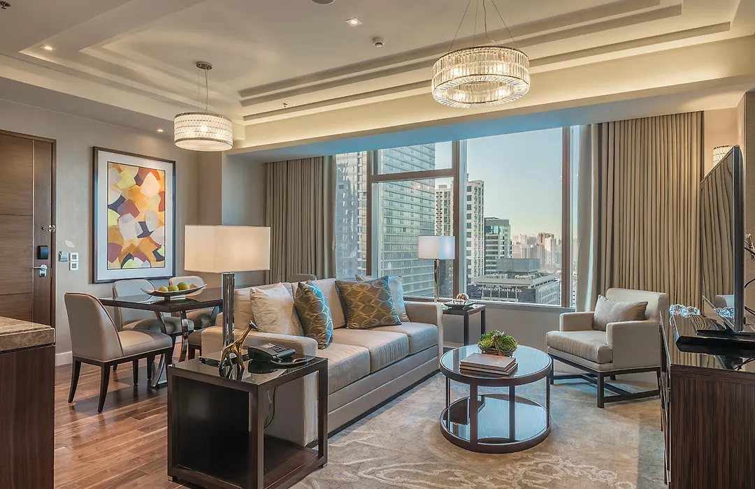 Dining options include an in-house restaurant offering a diverse selection of international cuisines. Nearby restaurants such as Samba, Din Tai Fung, and Canton Road are accessible within a short walk.