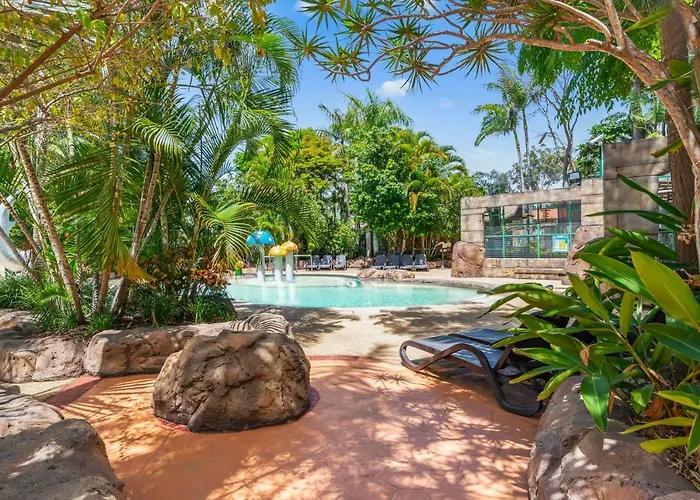 Ashmore Palms Holiday Village is a 4-star Gold Coast hotel offering self-contained cabin accommodation within beautifully landscaped grounds. Facilities include two lagoon pools, children's playgrounds, and an activity center, catering to families and groups.