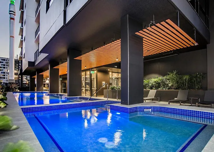 Atlas Apartments By Cllix, a 5-star Brisbane hotel rated 8.4/10 on Booking.com, offers fully self-contained accommodations with modern conveniences. Guests can enjoy outstanding leisure facilities including a lap pool, BBQ, gym, spa, and steam room.