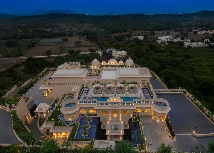 Aurika, Udaipur - Luxury By Lemon Tree Hotels is a 5-star property set atop a hill, offering panoramic views and a landscaped retreat spread across 18 hectares. The hotel features modern amenities, extensive dining options, and a variety of recreational facilities.