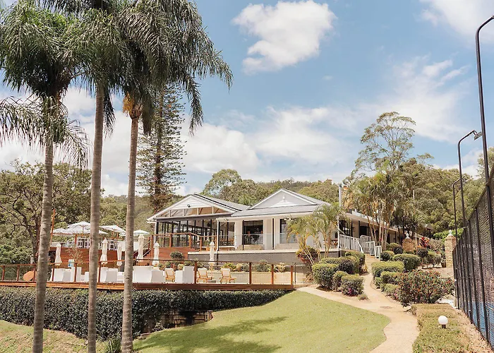 Austinvilla Estate, a 3-star Mudgeeraba hotel, features unique accommodation options including a treehouse and boutique bunkhouses. The estate offers a swimming pool, tennis court, and an on-site bar with a selection of beverages.