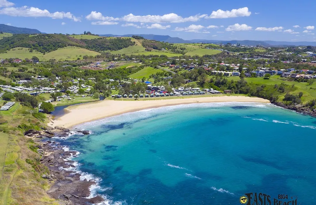 Recreational facilities encompass a jumping pillow, children's playground, and numerous outdoor activities along the beach. Big4 Easts Beach Holiday Park spans 14 hectares, providing spacious grounds and beach frontage.