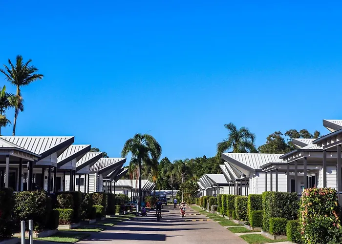 Big4 Rainbow Beach Holiday Park, a 3-star family-friendly hotel with an 8.3/10 rating on Booking.com, offers a variety of accommodation options including self-contained villas and cabins. Amenities include a games room, swimming pool, and access to water activities. The park provides a dog-friendly environment and is suitable for both relaxation and outdoor adventures.
