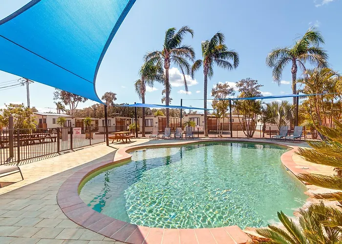 Birubi Beach Holiday Park, a 3-star Anna Bay hotel, features pet-friendly accommodations, an outdoor pool, and easy access to the ocean, ideal for surfing and fishing activities. Set on 6 hectares of landscaped grounds, the park provides amenities such as BBQ facilities and laundry services, offering a comfortable stay.