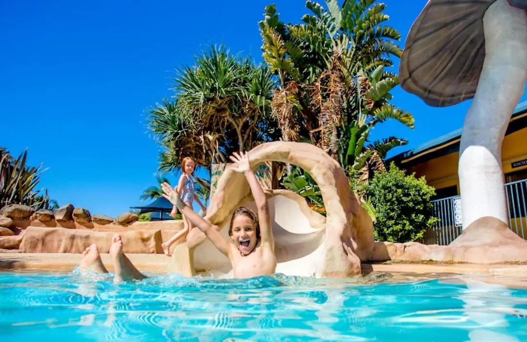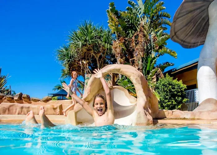 Discovery Parks - Ballina, a 4-star family-friendly hotel, features well-equipped accommodations with access to modern amenities, including an outdoor swimming pool and fitness center. Guests can enjoy various activities like mini-golf and barbecues, all set within the picturesque NSW Northern Rivers region.