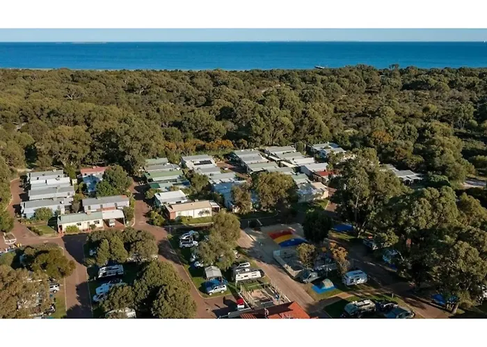 Discovery Parks - Woodman Point is a 4-star resort-style tourist park offering diverse accommodations including cabins, chalets, and powered caravan sites. Guests enjoy access to an outdoor pool and facilities for children. Its unique setting within the Woodman Point Regional Nature Reserve presents various outdoor activities.