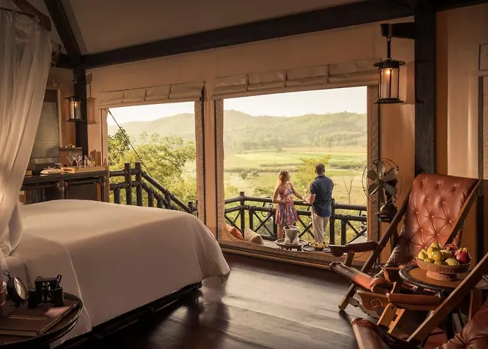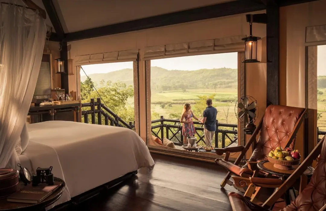 Experience the ultimate in luxury camping at Four Seasons Tented Camp Golden Triangle, rated 9.4/10 on Booking.com. This 5-star Golden Triangle hotel offers elegant tented accommodations, diverse culinary options, and exclusive activities such as elephant interactions and spa treatments.