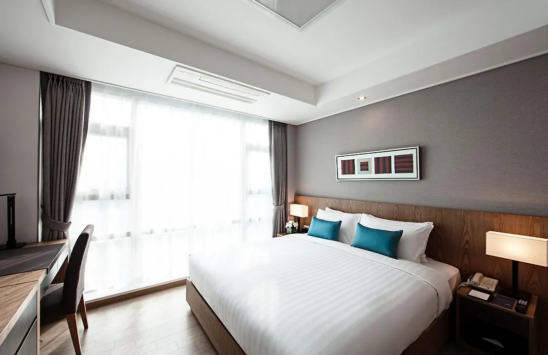 The hotel is conveniently located within walking distance of key landmarks such as Namdaemun Market, Deoksu Palace, and Myeongdong Shopping Street. Nearby subway access includes Seodaemun and Chungjeongno Stations, both within a short walking distance. Guests can also access the Namsan Cable Car and funicular for additional transport options.