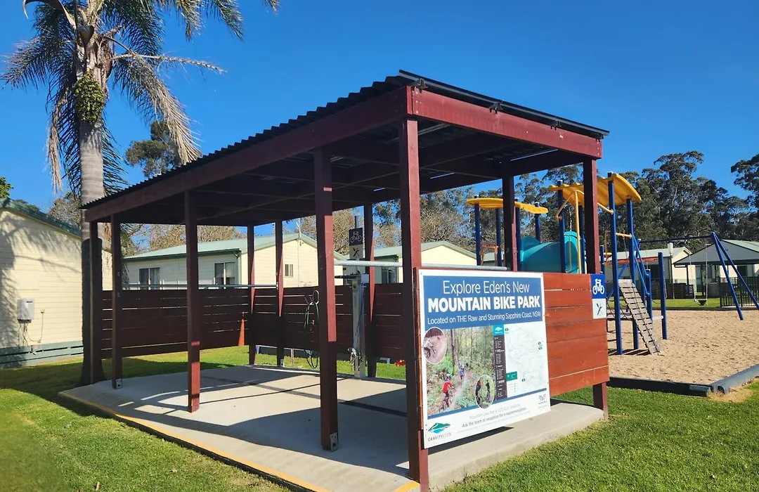 The Eden Gateway Holiday Park is situated on 8 hectares of landscaped grounds, providing ample space for outdoor activities. It is located just 25 kilometers from Merimbula, allowing easy access to regional attractions like the Killer Whale Museum and Cocora Beach.