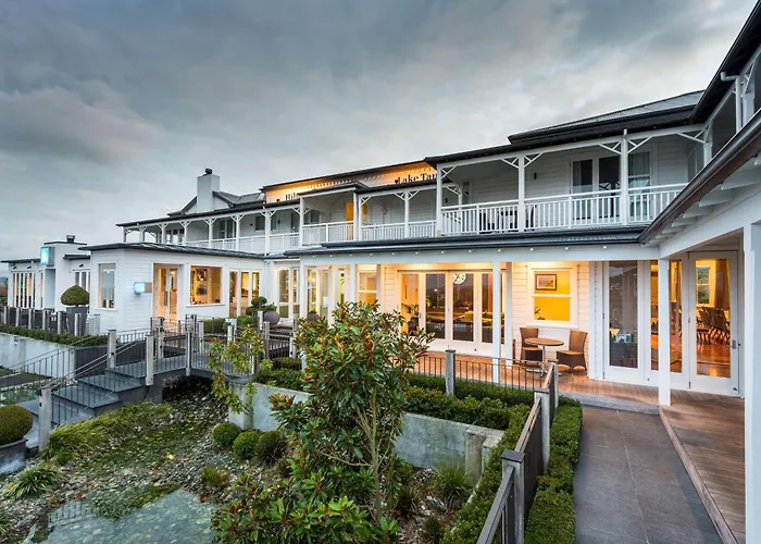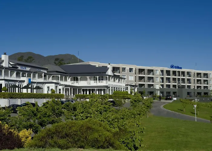 Hilton Lake Taupo features stunning views over Lake Taupo and the surrounding volcanic scenery. This 4-star Taupo hotel includes an outdoor thermally heated pool and offers quality local dining options. Guests can enjoy spacious rooms with private balconies and modern amenities.