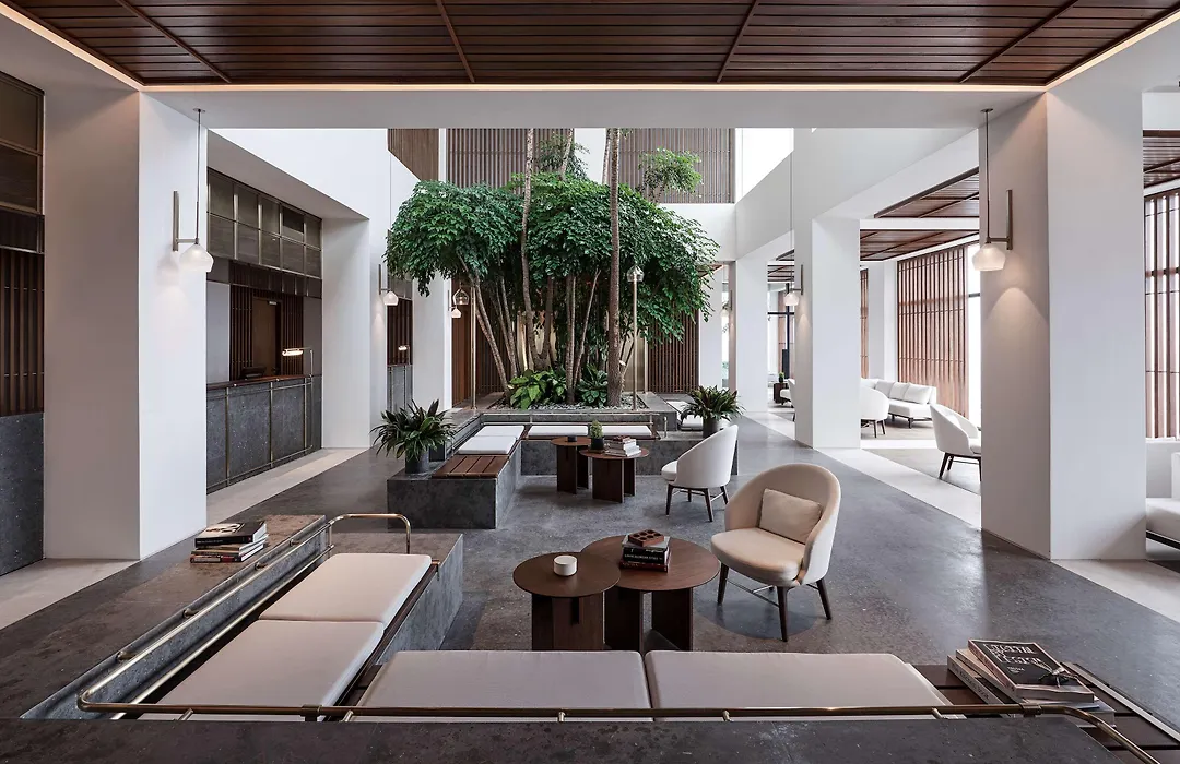 Dining options include Entier, a relaxed French restaurant that follows a nose-to-tail culinary philosophy, and Botanica + Co, serving Asian and international dishes prepared with seasonal ingredients. Guests can also enjoy casual meals at The Pool Bar, surrounded by greenery.