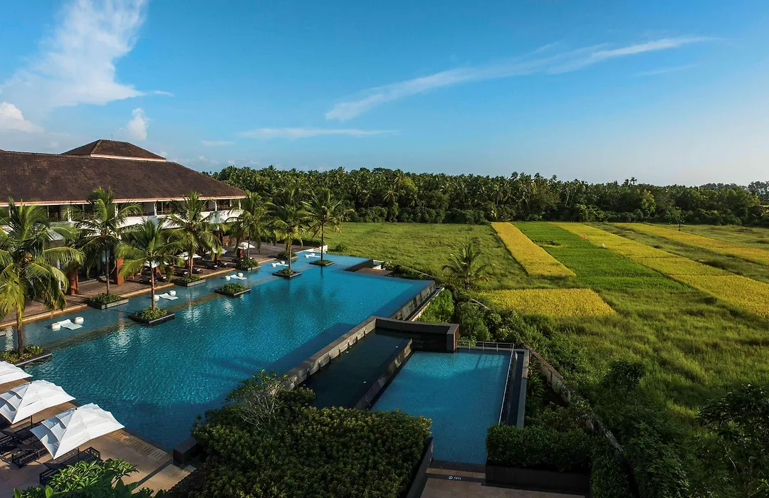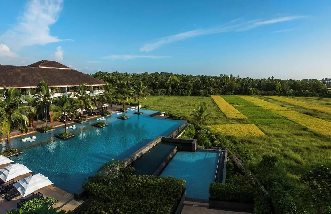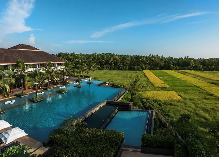 Alila Diwa Goa - A Hyatt Brand, a 5-star property rated 9.1/10 on Booking.com, offers luxurious beachfront accommodations and a range of wellness facilities, creating a serene sanctuary. With an infinity pool and various dining options, it provides a relaxing experience in a beautifully landscaped environment.