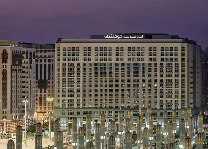 Anwar Al Madinah Mövenpick is a 5-star hotel offering extensive facilities for families and individual travelers, including direct links to a shopping mall. It features panoramic views of the Prophet's Mosque and several dining options that reflect homeland cooking traditions.