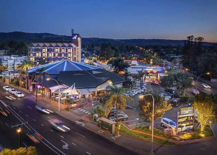 The Arkaba Hotel features modern accommodation and entertainment options, achieving a 4-star rating and an 8.8/10 score on Booking.com. Amenities include a sports bar, outdoor screen, gaming room, and free parking. Located in Fullarton, it is five minutes east of Adelaide's CBD.