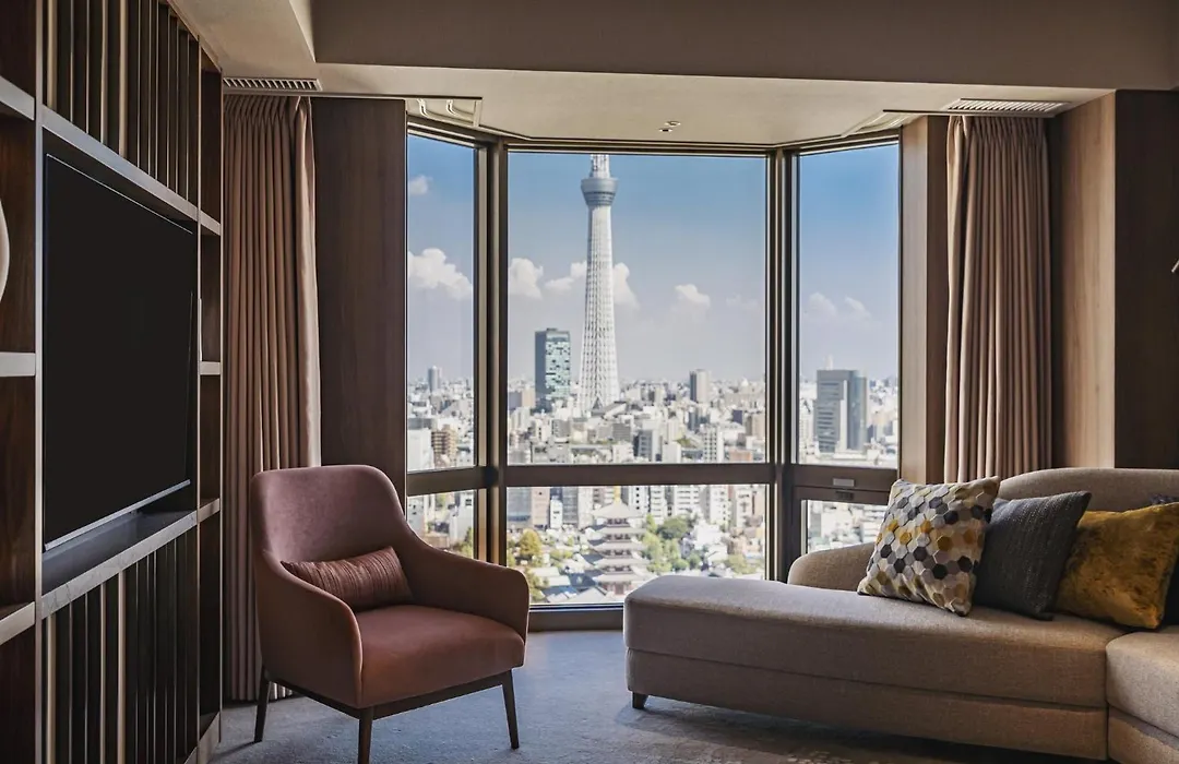 Asakusa View Hotel, a 4-star facility rated 8.4/10 on Booking.com, features stunning panoramas of Tokyo landmarks like the Skytree and Senso-ji Temple. This hotel includes an indoor pool, a wedding chapel, and multiple dining options, providing modern amenities in a historic Tokyo setting.