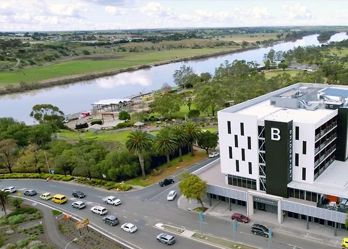 Bridgeport Hotel offers 4.5-star accommodations in Murray Bridge, featuring a heated infinity pool and a diverse range of dining options. This modern hotel allows guests to enjoy stunning views of the Murray River, complemented by multiple bars and a lively gaming lounge.