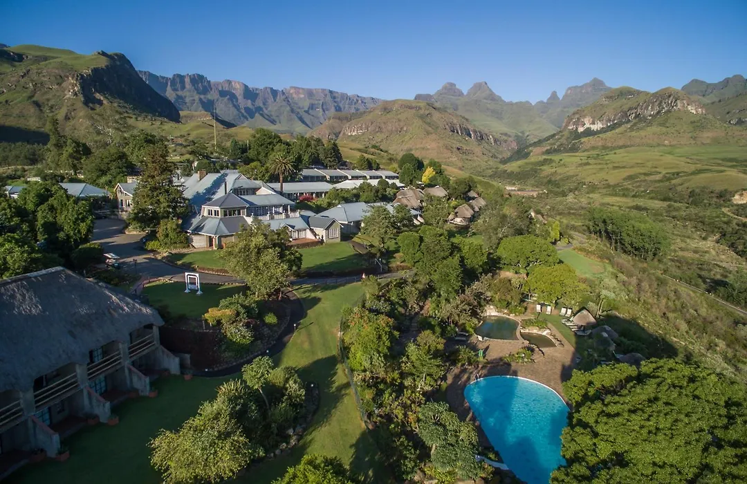 Cathedral Peak Hotel, a 4-star family-owned establishment, offers luxurious accommodations and exquisite dining experiences set against the iconic Drakensberg mountain range. The hotel features a 9-hole golf course, a wellness center, and abundant outdoor activities, making it suitable for families and adventure seekers alike.