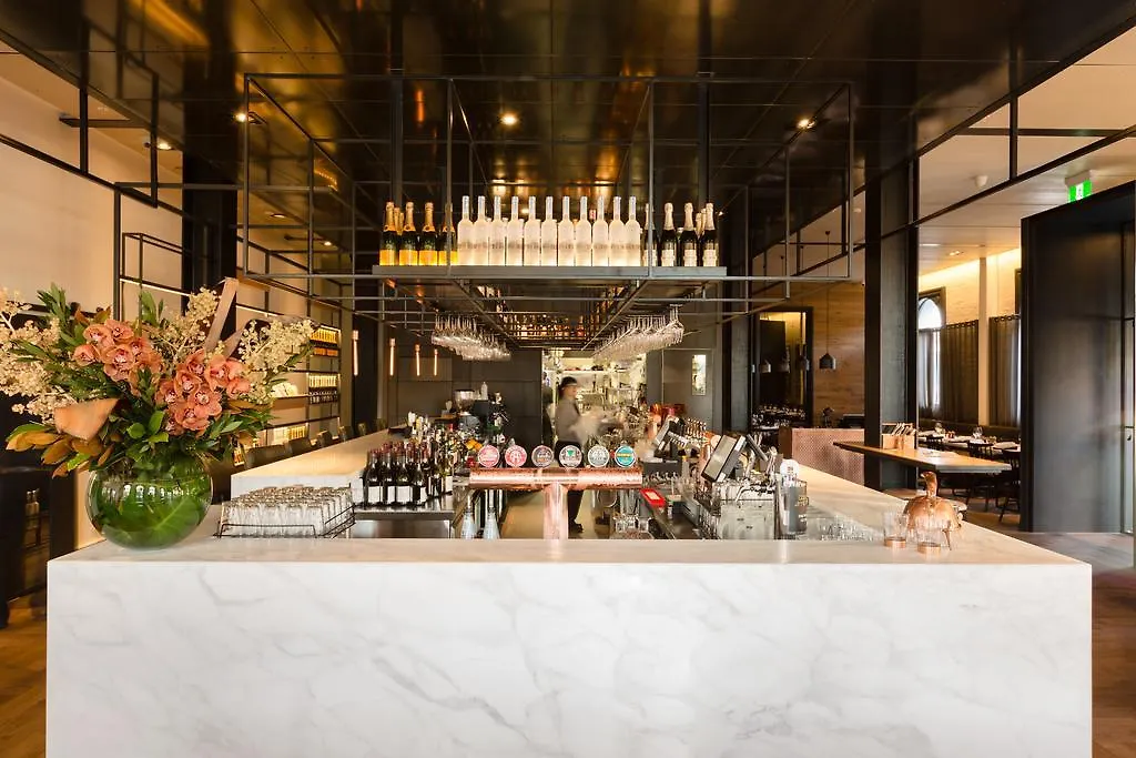 The hotel's neighbourly bistro bar serves a polished menu of gourmet mains and desserts, showcasing seasonal and regional produce with Gallic influences. Guests can enjoy a wide wine selection, and a roundtrip airport shuttle is available.