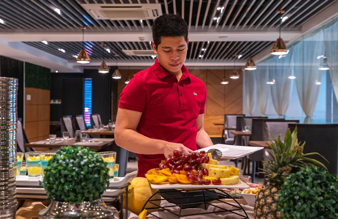 Dining options include Mezzo Food Hall, which offers a buffet breakfast that blends local and international cuisines, as well as business lunches. The Coda Wet Bar provides crafted cocktails and a relaxed atmosphere with a poolside setting.