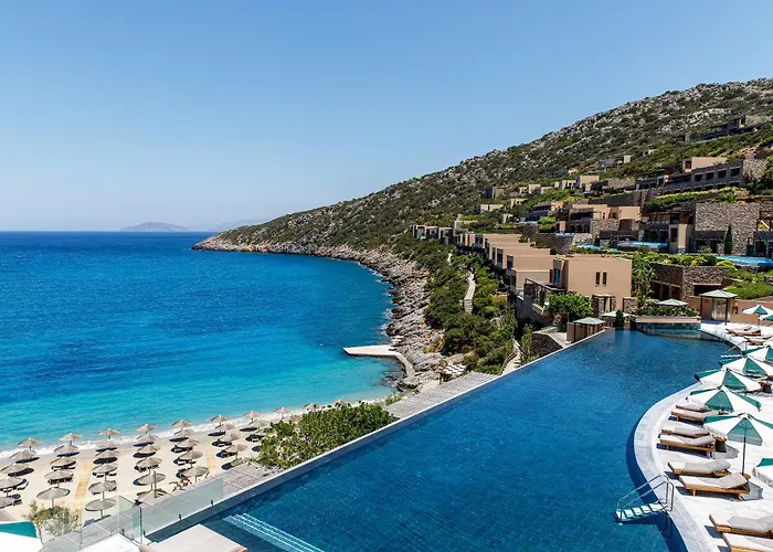 Daios Cove, a 5-star luxury hotel, offers high-end design and a sea water infinity pool in a secluded cove. The resort features a comprehensive wellness center, water sports center, and six dining venues, ensuring a luxurious stay in Vathy (Crete).