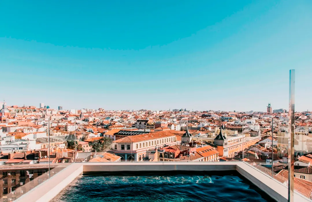 Dear Hotel features a sky pool and rooftop terrace, offering 360-degree views of Madrid. The hotel also has a wellness focus, providing access to in-room massages and a serene ambiance with well-designed spaces for relaxation.