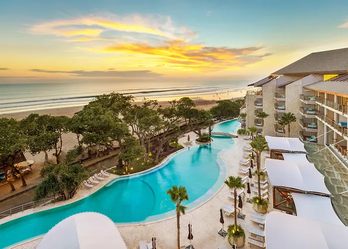 Double - Six, Luxury Hotel - Seminyak offers 146 suites and penthouses with ocean views, including a 300m2 3-bedroom penthouse. This 5-star property features a 120-meter pool, a rooftop bar, and five dining venues, providing a luxurious experience in Seminyak (Bali).