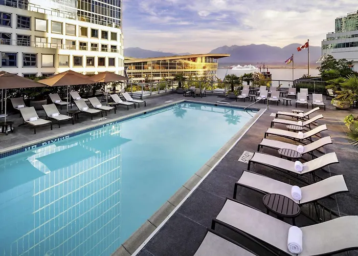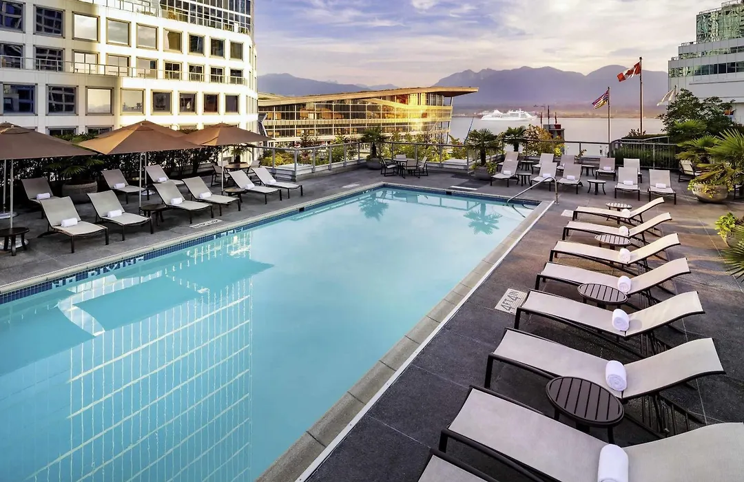 Fairmont Waterfront, a 5-star Vancouver hotel rated 8.8/10 on Booking.com, offers luxury accommodations with stunning views of the North Shore Mountains and Vancouver Harbour. The property features a rooftop heated outdoor pool, a fitness center, and direct access to the Vancouver Convention Centre.