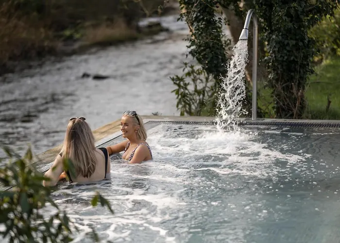 Galgorm, a 4-star Ballymena hotel with a 9.1/10 Booking.com rating, offers a unique Thermal Spa Village set amidst 182 hectares of lush parkland. The resort features dining options, luxurious accommodations, and a range of wellness facilities, making it a notable destination for relaxation and leisure.