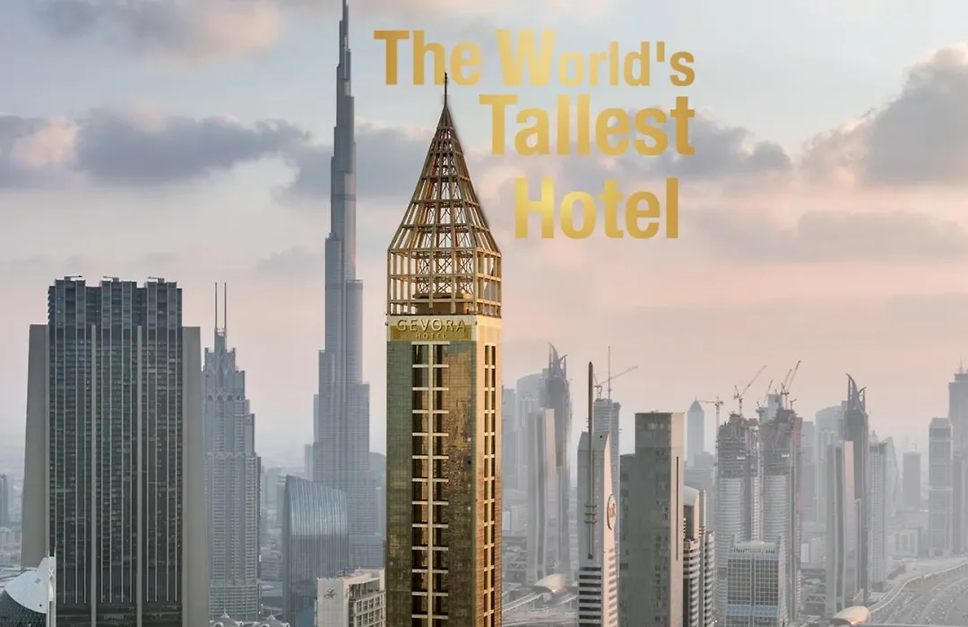 Gevora Hotel offers unique views from the tallest hotel in the world, standing at 400 meters (0.3 m). This 4-star Dubai hotel features 505 rooms and five dining options, alongside a health and wellness club and leisure facilities.