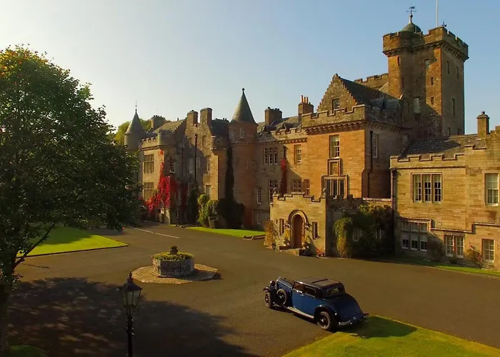 Glenapp Castle, a 5-star luxury hotel rated 9.4/10 on Booking.com, features gourmet dining and various outdoor sports. This Ballantrae hotel offers a blend of historical charm and modern amenities, including a Victorian glasshouse and extensive gardens.