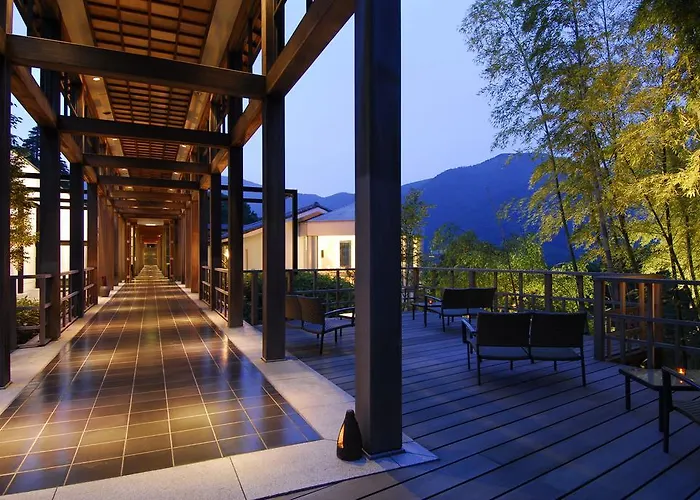 Gora Kadan, a 5-star hotel rated 9.3/10 on Booking.com, features traditional Japanese accommodations with modern design elements, an indoor mineral hot spring, and authentic kaiseki cuisine. The property is well-suited for leisure travelers, offering a range of wellness services and recreational amenities.