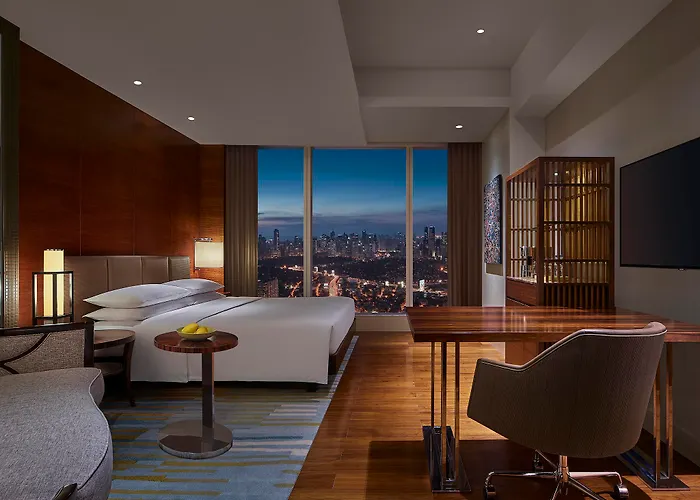 Grand Hyatt Manila offers a panoramic view of the Makati skyline and Manila Bay from its prime location at the corner of 8th Avenue and 35th Street. This 5-star Taguig hotel is equipped with an outdoor swimming pool, multiple dining options, and a comprehensive fitness center.