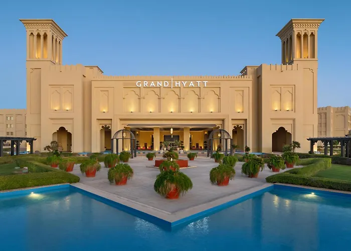 Grand Hyatt Doha Hotel & Villas is a stunning 5-star hotel offering a luxurious stay with various leisure options and dining experiences. The hotel showcases contemporary Arabian architecture and features an expansive beach area alongside multiple pools. Guests can enjoy exclusive access to the private club lounge.