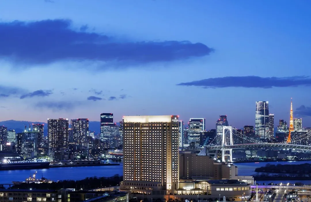 Grand Nikko Tokyo Daiba, a 5-star hotel with an 8.9/10 rating on Booking.com, boasts panoramic views of Tokyo Bay and the Rainbow Bridge. This upscale property features eight restaurants, a rooftop swimming pool, and modern conference facilities.