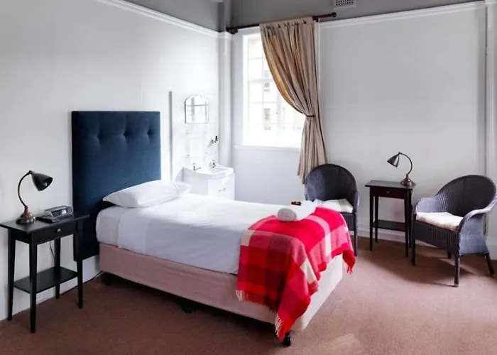 Rooms at Grand Hotel Sydney include amenities such as free WiFi, flat-screen TVs, and refrigerators. Some accommodations feature shared bathrooms and city views.