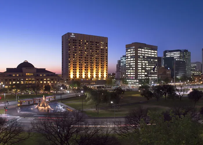 Hilton Adelaide, rated 8.1/10 on Booking.com, features a heated outdoor swimming pool, multiple dining options, and pet-friendly rooms. This 5-star Adelaide hotel showcases contemporary design in the heart of the city's entertainment precinct.