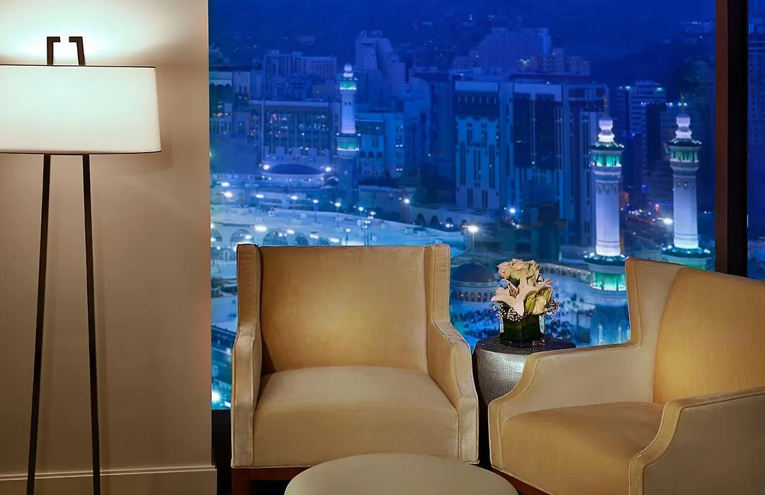 Dining options include Al Mustafa, serving Arabian and International cuisine all day, and Azure, offering Indian and Malaysian dishes. Sahtein provides Lebanese food with options for private dining and outdoor terraces overlooking the landscape of Makkah.