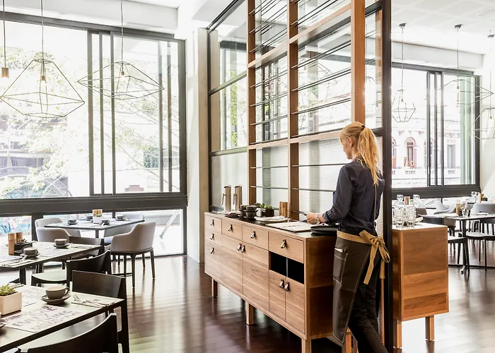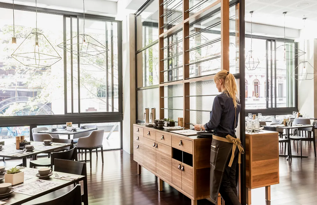 Dining options include a signature restaurant serving locally inspired cuisine and a stylish bar. Guests have access to a lounge offering complimentary breakfast and refreshments throughout the day.