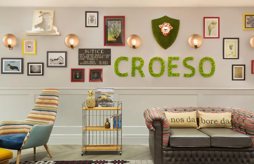 Lefel 6, the hotel's rooftop restaurant and bar, serves a delicious, classic British all-day menu crafted from locally sourced produce. Guests can enjoy cocktails and breathtaking city views from the terrace. For lighter fare, Bute & Co offers coffee and snacks inspired by Welsh design.
