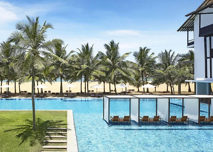 Jetwing Blue, a 5-star hotel with an 8.1/10 Booking.com rating, features luxury accommodation, two swimming pools, and a spa. The hotel provides a wide array of modern facilities, including in-house boutiques and a large ballroom that can accommodate up to 800 people.